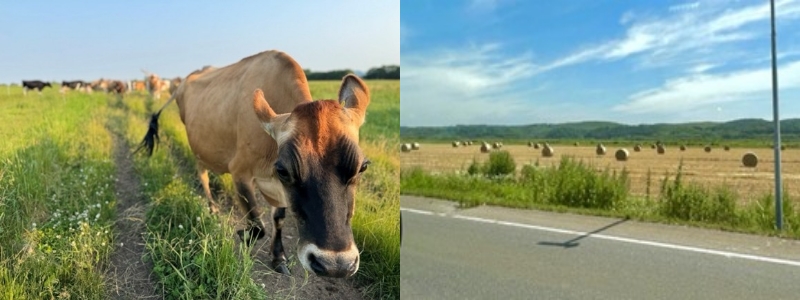 放牧地が普通に広がっていたり、牧草ロールが季節ごとに並んでいたり…。